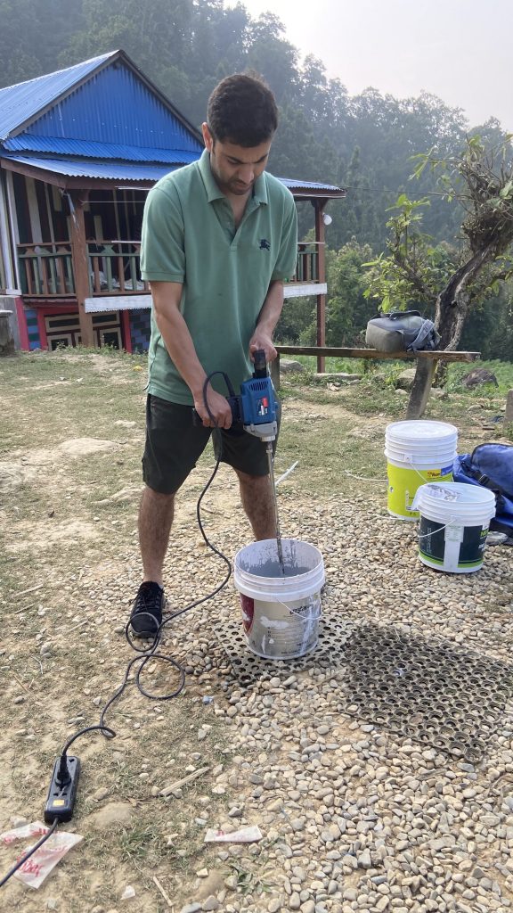 Nach dem Ende der regulären Regenzeit im Herbst 2024 wurde Nepal von ungewöhnlich heftigen Niederschlägen getroffen. Diese führten zu zahlreichen Erdrutschen und verschütteten Straßen, wodurch das Projekt zunächst gestoppt wurde. Da die Zufahrtwege nicht mehr befahrbar waren, konnten Baumaterialien nicht angeliefert werden.