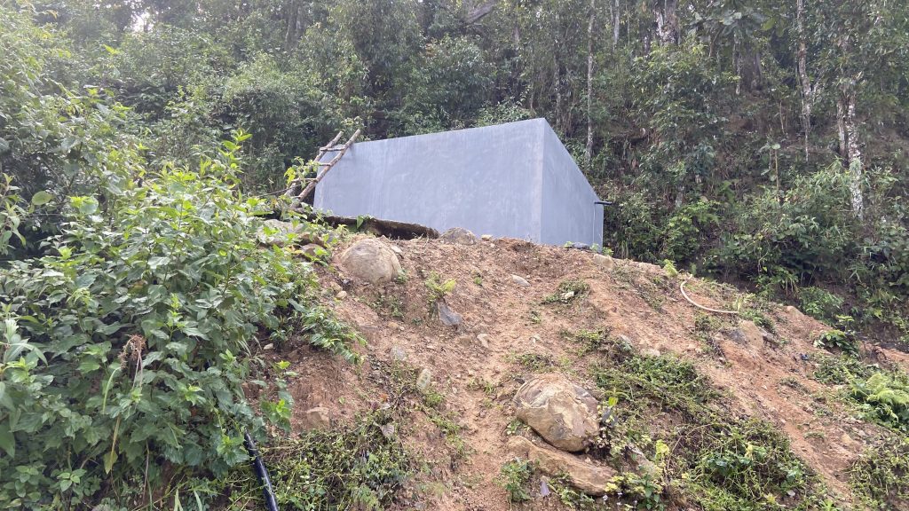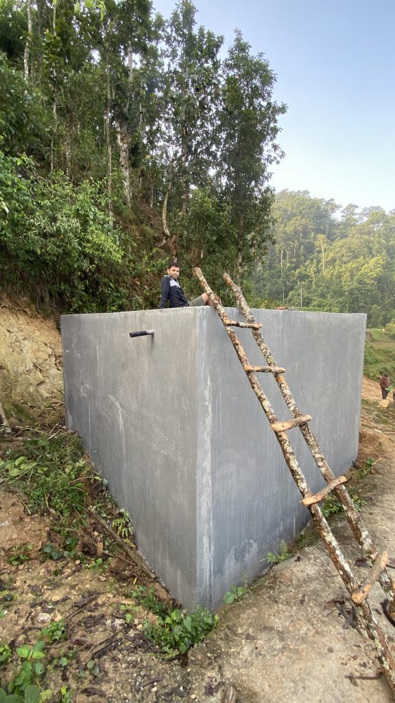 Erst Mitte November war es uns möglich, nach Makwanpur zurückzukehren. Baumaterialien konnten wieder angeliefert werden. Die Bauarbeiten wurden durch die lokale Bevölkerung wieder aufgenommen. Zum Schutz vor Witterungseinflüssen wurde der Tank gestrichen.
